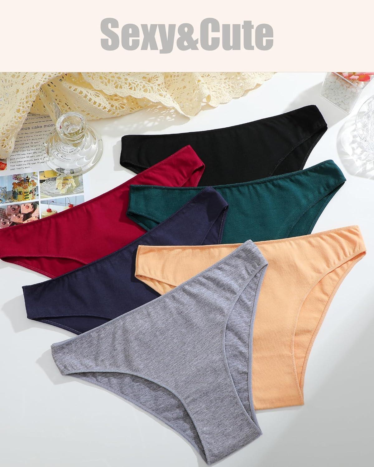 FINETOO 12 Pack Cotton Underwear for Women Cute Low Rise Bikini Panties High Cut Breathable Sexy Hipster Womens Cheeky S-XL(Set7-12pack)