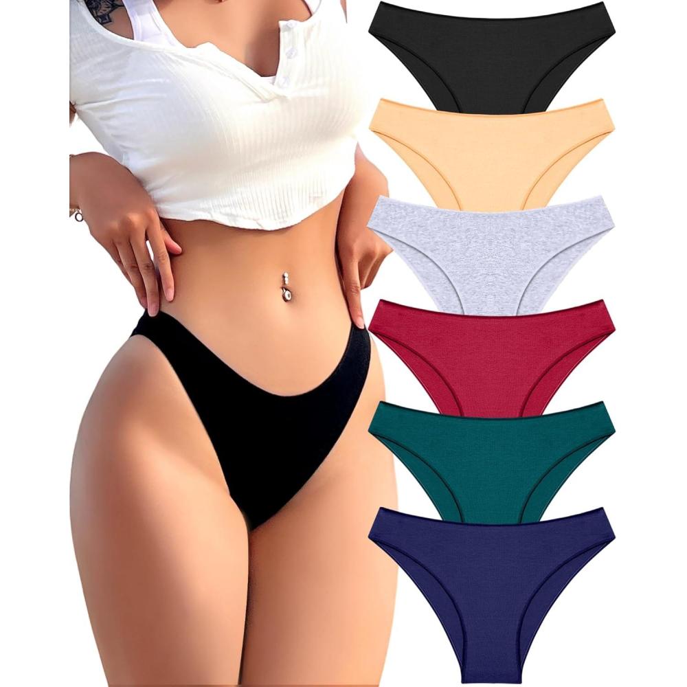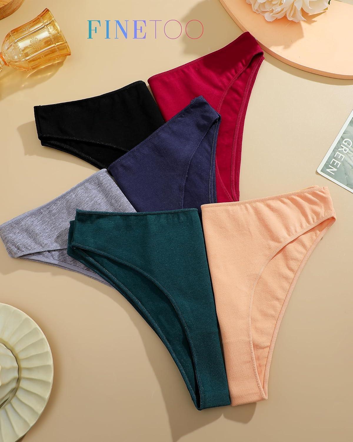 FINETOO 6 Pack Cotton Underwear for Women Cute Low Rise Bikini Panties High Cut Breathable Sexy Hipster Womens Cheeky S-XL(Set7)