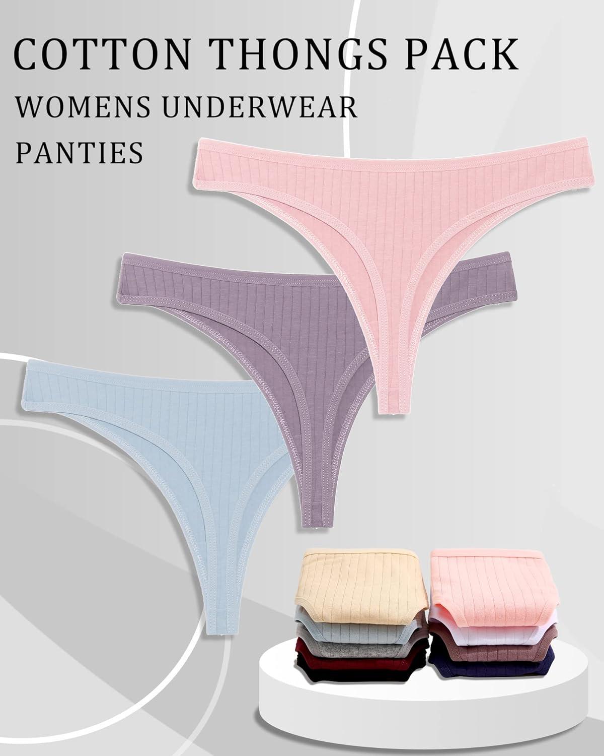 FINETOO Cotton Thongs for Women Soft Low Rise Sexy Thong Ladies Panties Womens Underwear 6 Pack XS-XXXL(Set6-6pack)