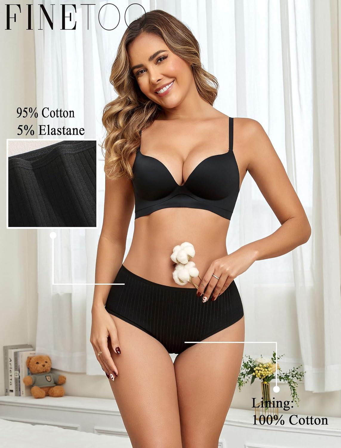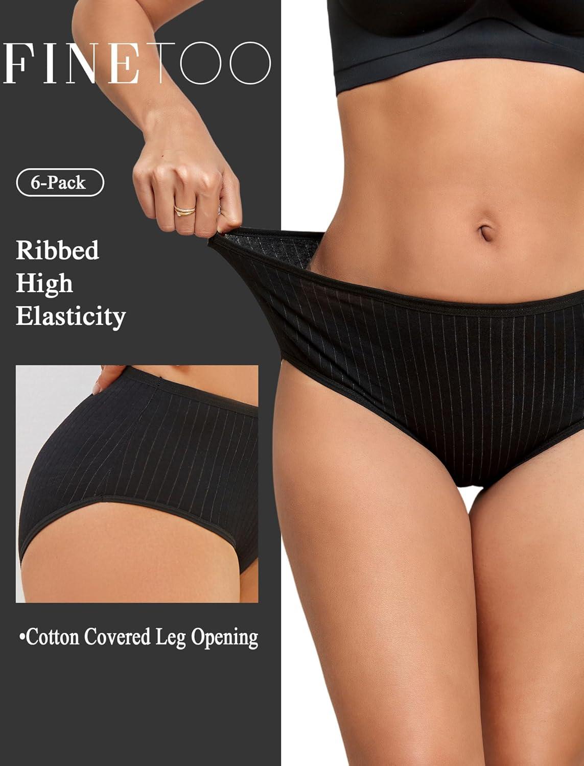 FINETOO Cotton Underwear for Women High Waisted Full Coverage Briefs Soft Breathable Panties for Ladies 6 Pack(Colorb)