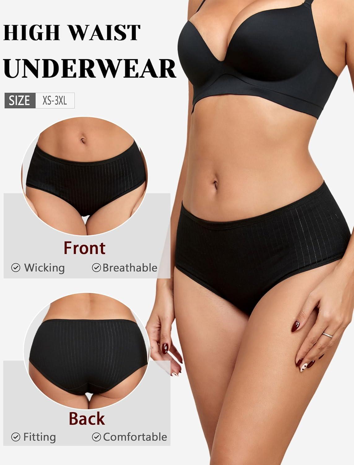 FINETOO Cotton Underwear for Women High Waisted Full Coverage Briefs Soft Breathable Panties for Ladies 6 Pack(Colora)