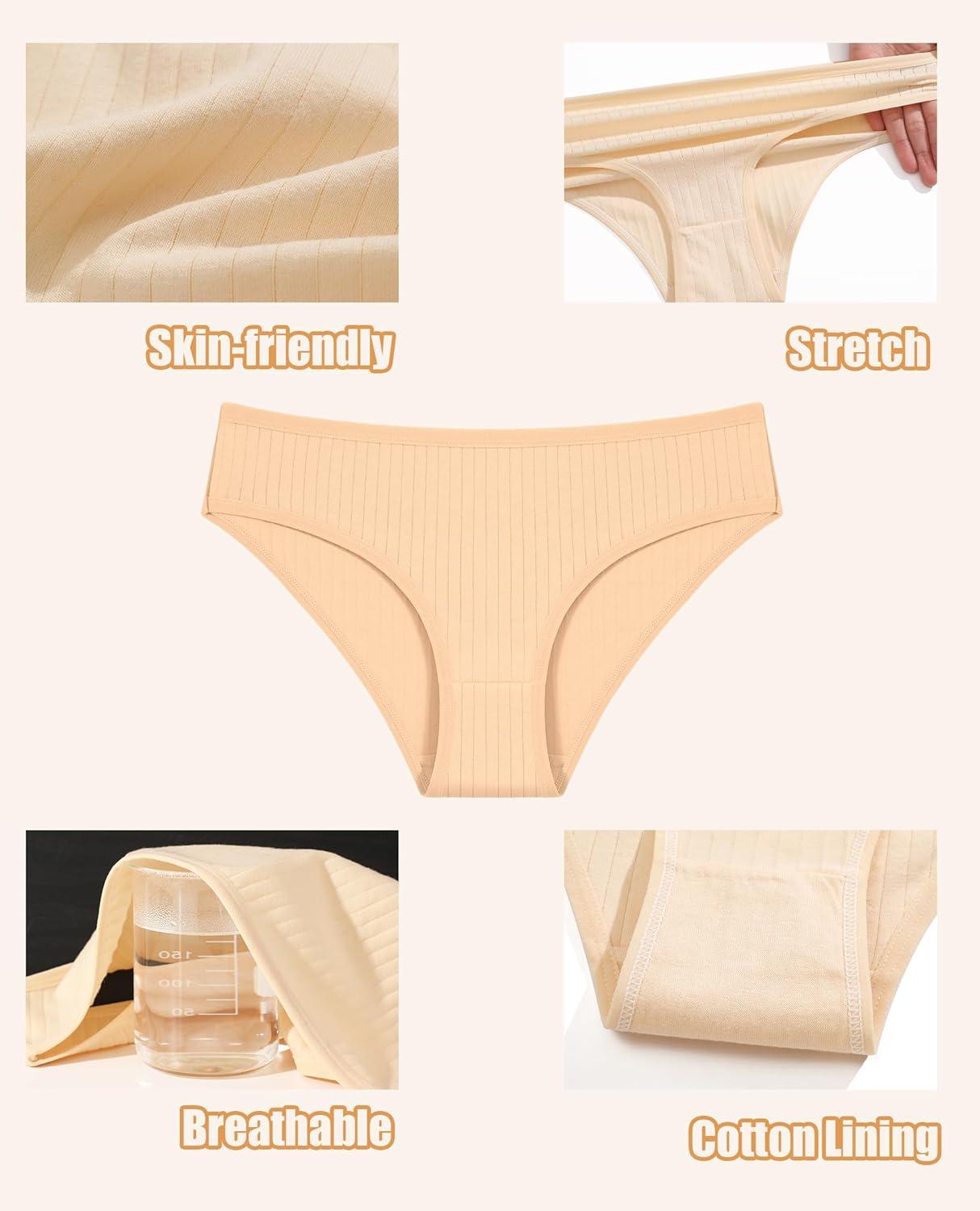 FINETOO Cotton Underwear for Women Sexy Low Rise Ribbed Hipster Breathable Soft Womens Bikini Girls Panties Cheeky S-3XL(Black+red+green+blue+beige+grey)