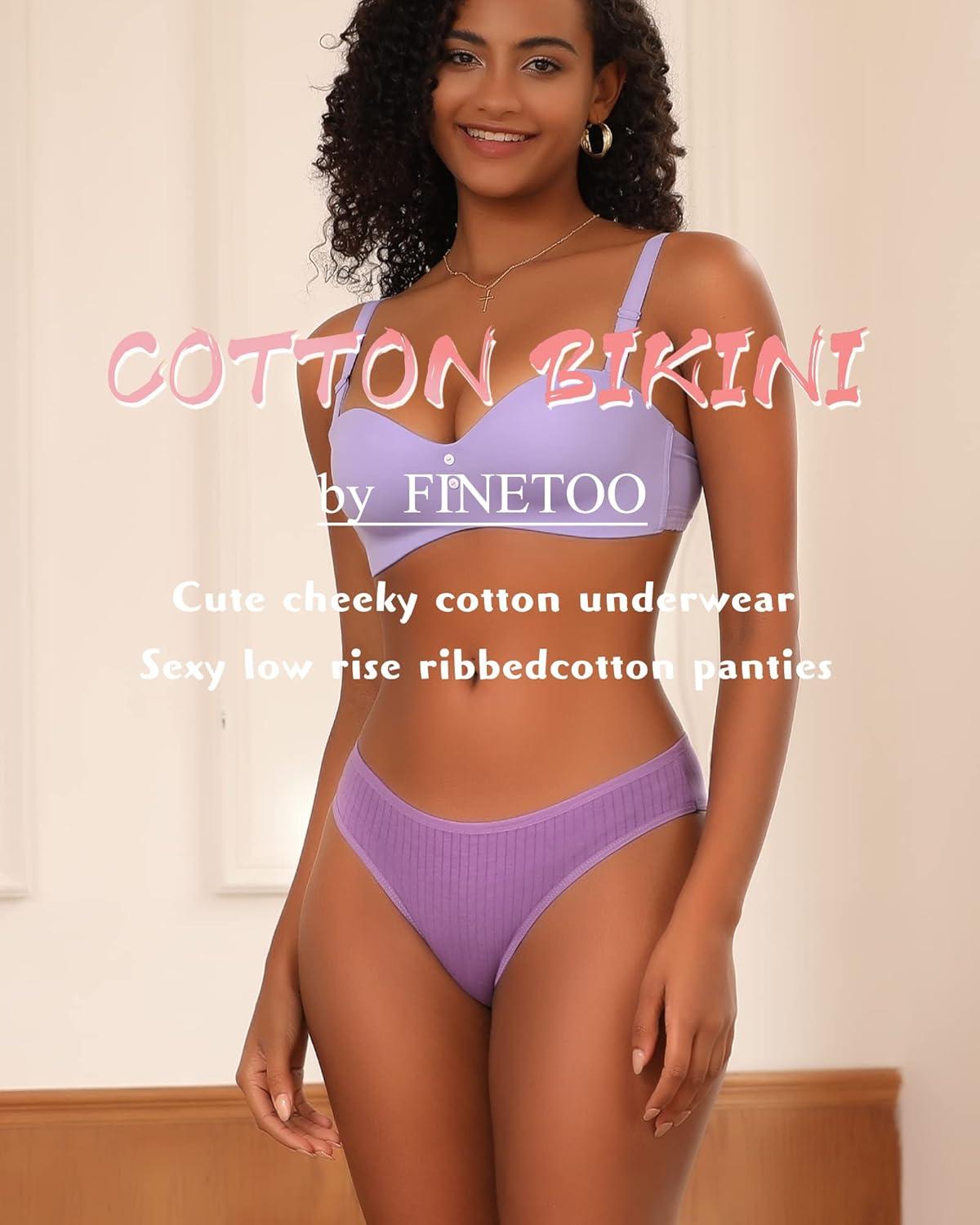 FINETOO Cotton Underwear for Women Sexy Low Rise Ribbed Hipster Breathable Soft Womens Bikini Girls Panties Cheeky S-3XL(Black+white+beige+pink+light Pulple+grey)