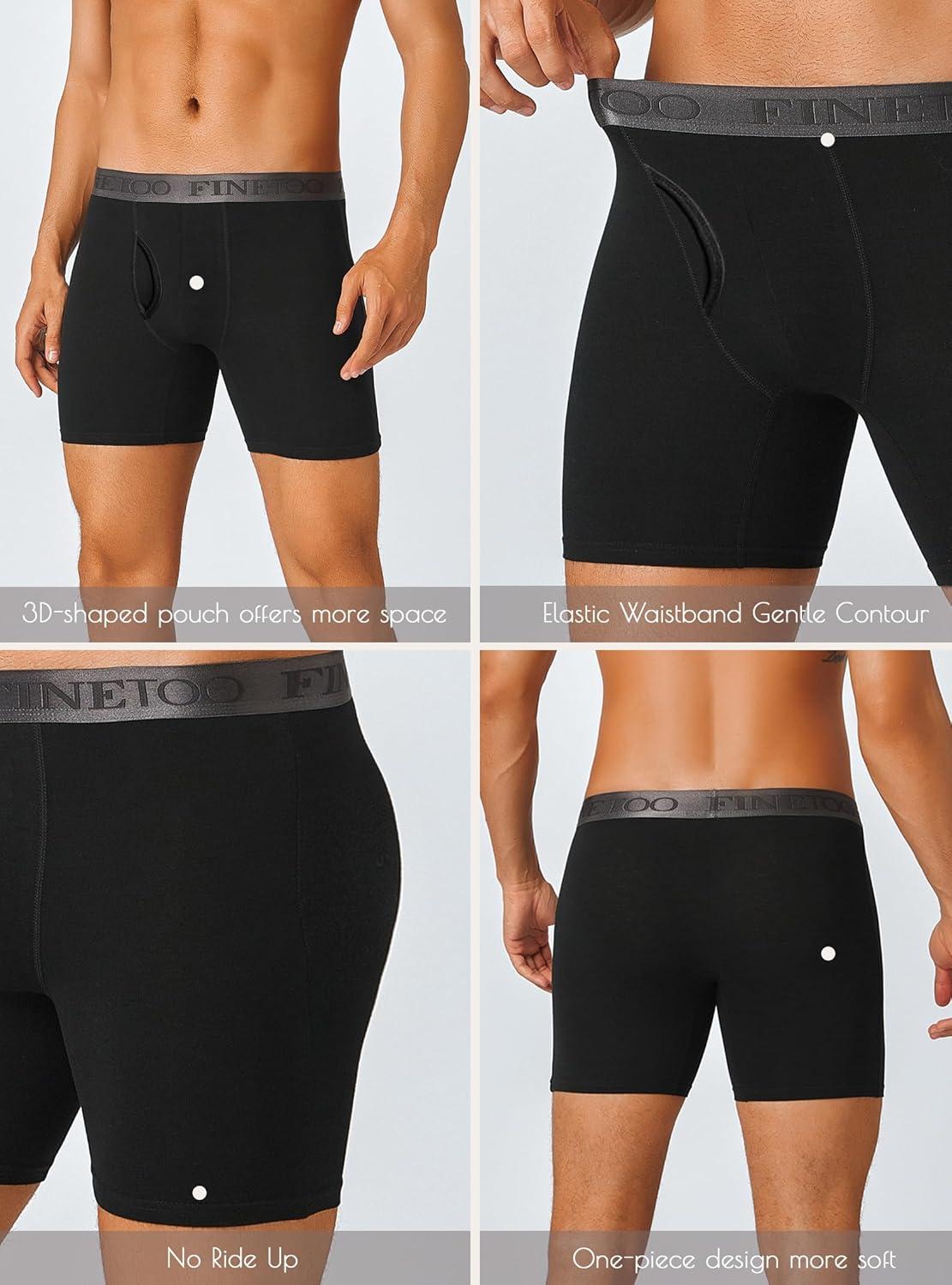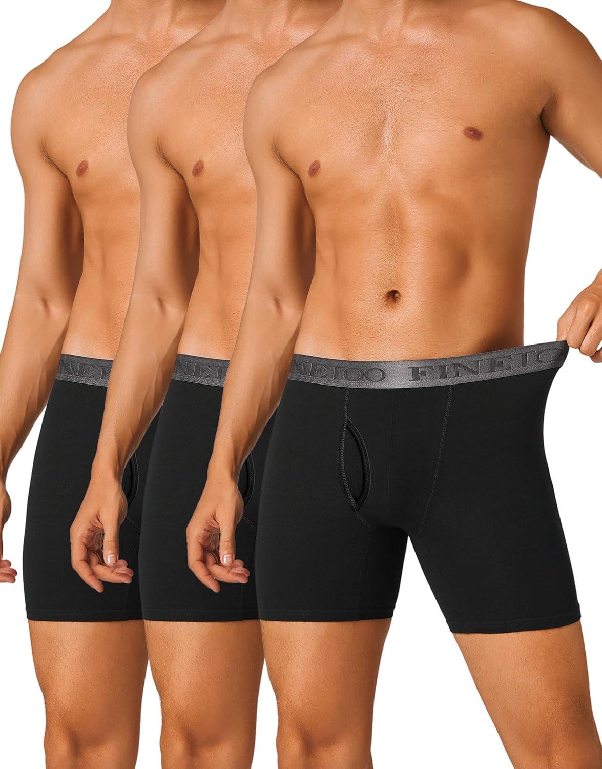 FINETOO Mens Underwear Boxer Briefs Soft Breathable Cotton Wide Waistband Men Underwear 3 Pack(A-black(3 Pack))