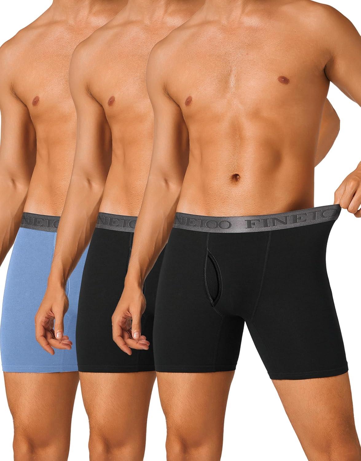 FINETOO Mens Underwear Boxer Briefs Soft Breathable Cotton Wide Waistband Men Underwear 3 Pack(D-multicolor(3 Pack))