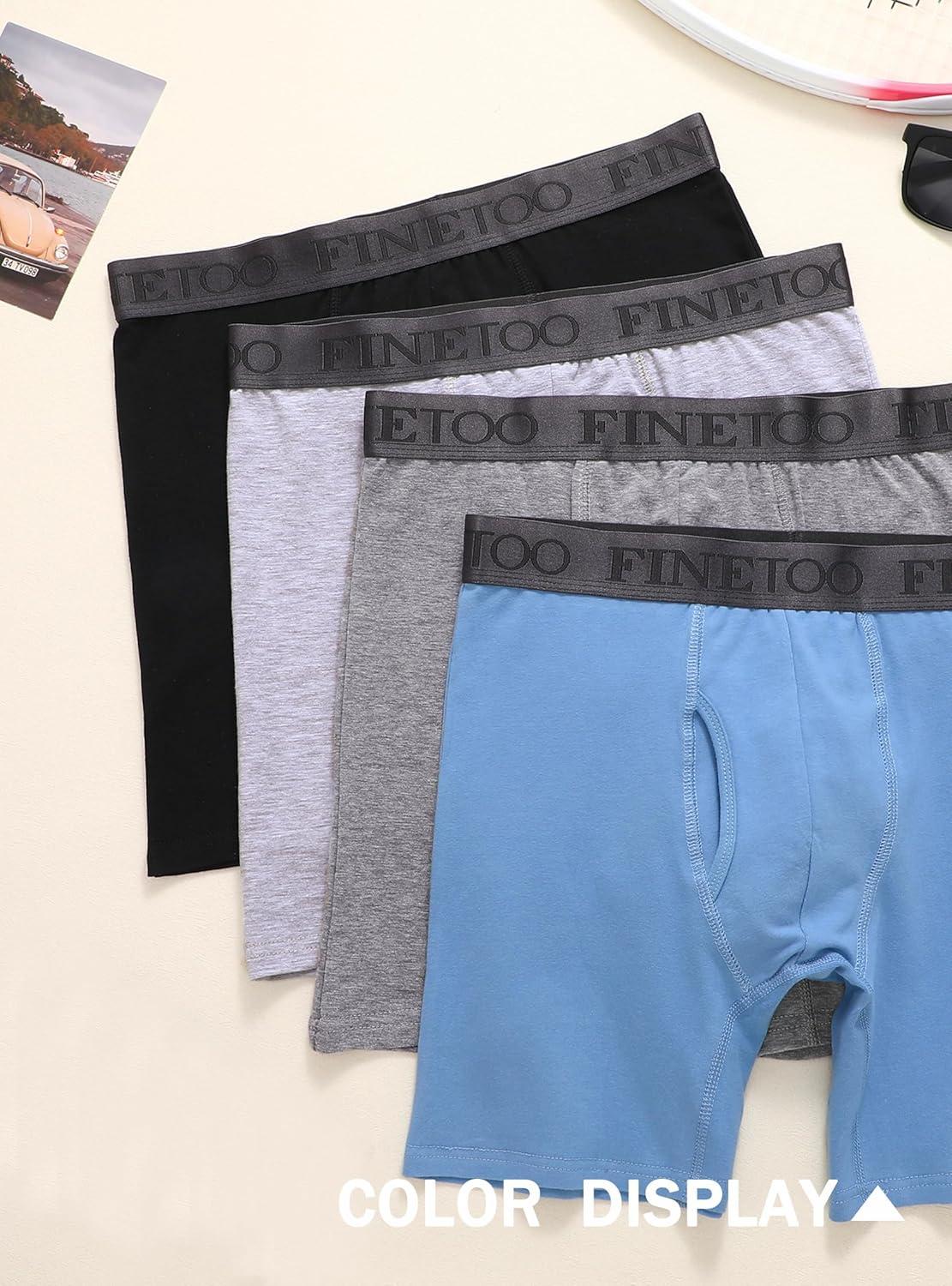 FINETOO Mens Underwear Boxer Briefs Soft Breathable Cotton Wide Waistband Men Underwear 3 Pack(B-grey(3 Pack))