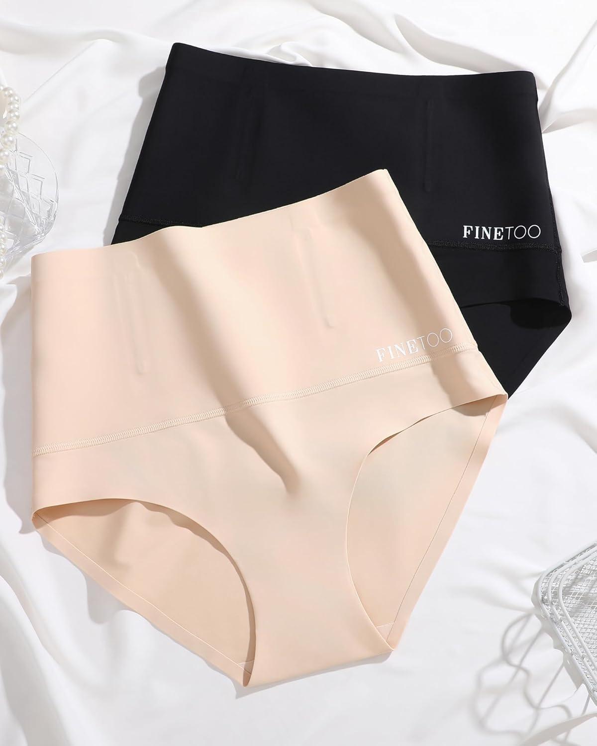 FINETOO Tummy Control Underwear Shapewear for Women Seamless High Waisted Panties Moderate Control Briefs S-3XL(A-2pack)
